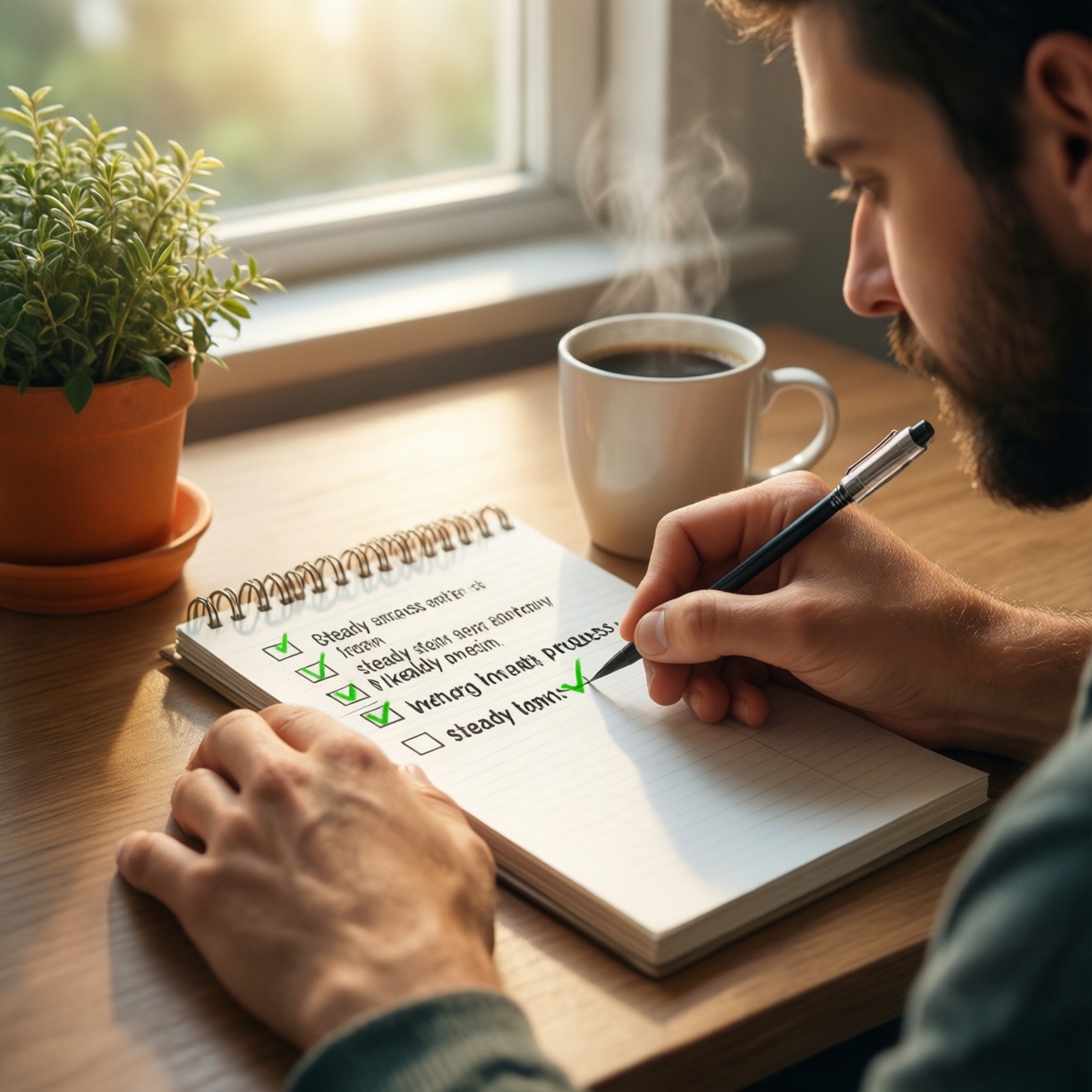 - Одна точка фиксации: заметка в телефоне, календарь, бумажный трекер на виду.